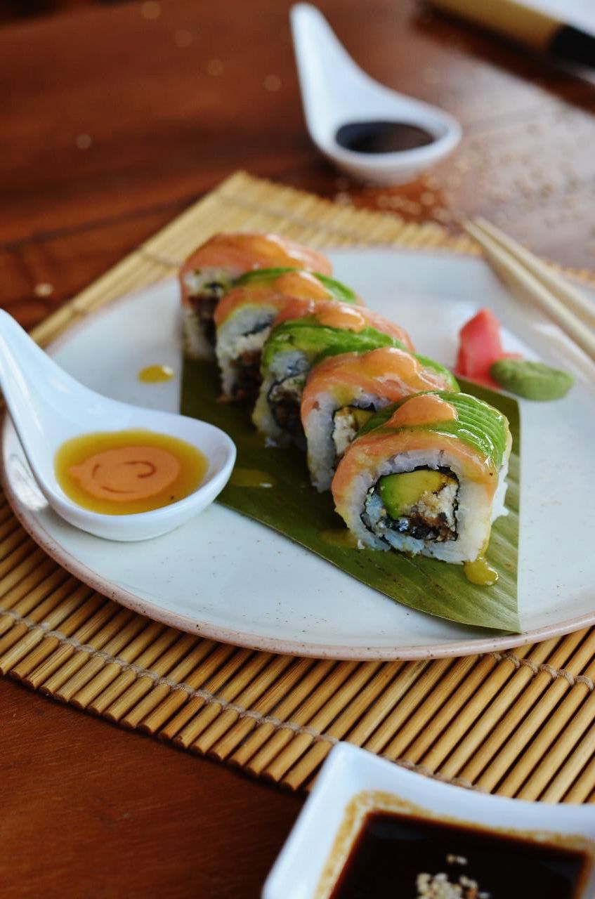 Roll al estilo maki, atún spicy, aguacate y ajonjolí.