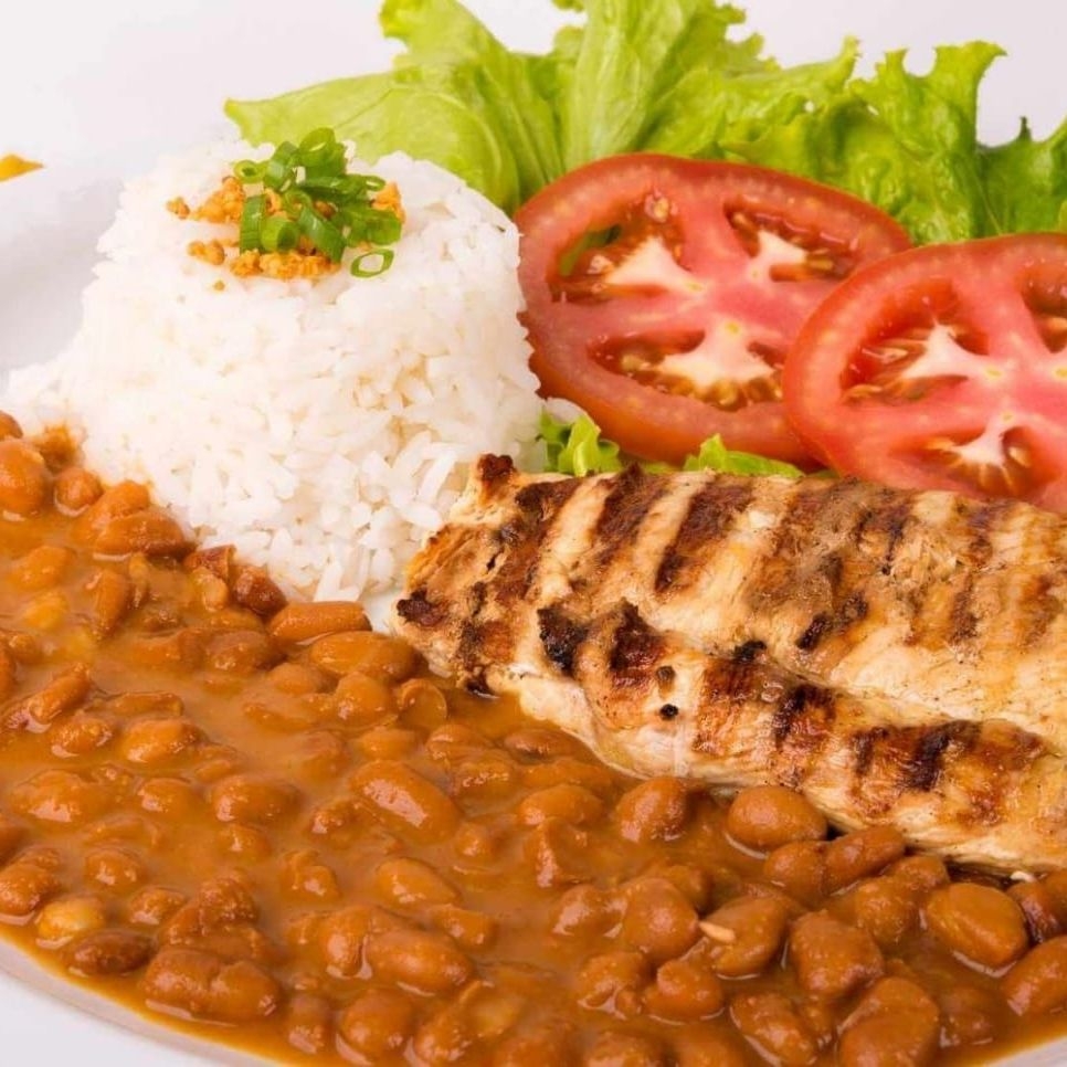El almuerzo contiene :frijoles arroz filete de pollo o pescado ensalada y aguapanela