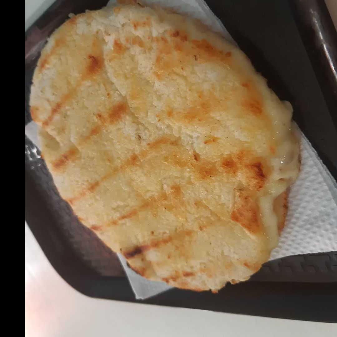 Arepa con huevo, slchicha picada, queso y mantequilla