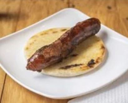 Chorizo de Pollo Acompañado de Arepa grande y Gaseosa Personal