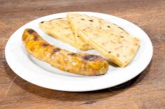 Chorizo de pollo acompañado de arepa.