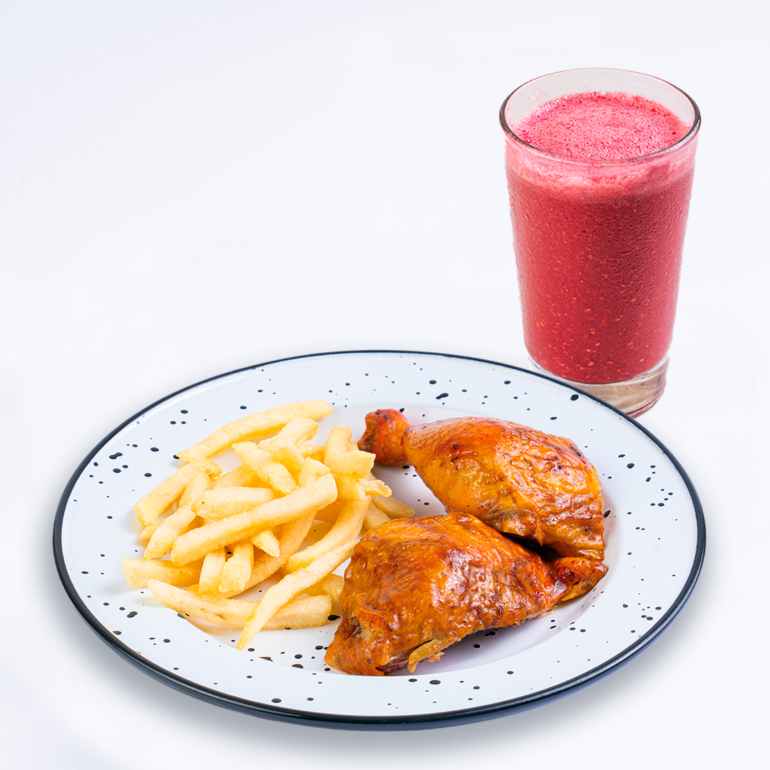 1/4 de pollo asado + francesa o artesanal o 2 papas saladas + bebida personal