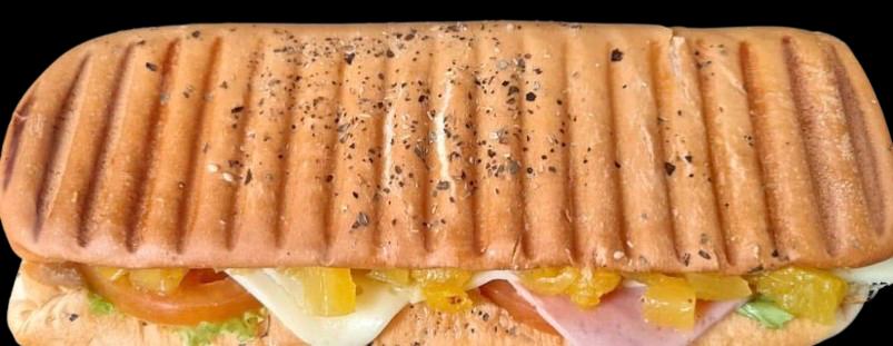 Jamón, queso, piña calada, lechuga y tomate acompañado de nuestra deliciosa salsa de ajo de la casa.
