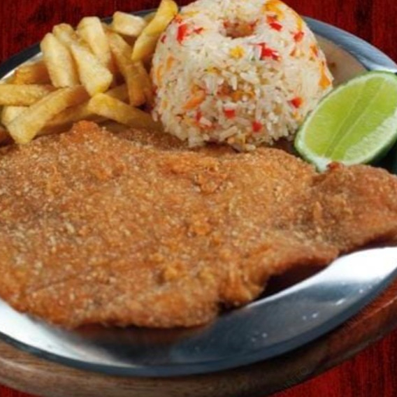 2 platos de chuleta valluna de pollo 200gr, con arroz, papa a la francesa y ensalada.