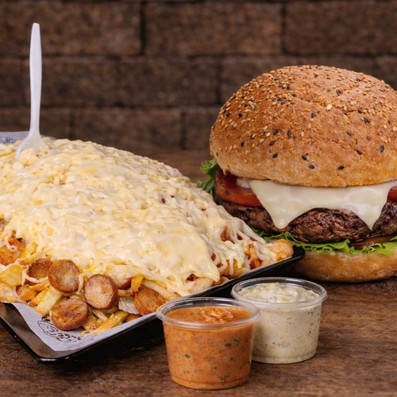 Una Hamburguesa clásica y una salchipapa gratinada personal