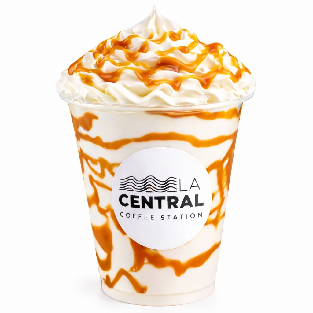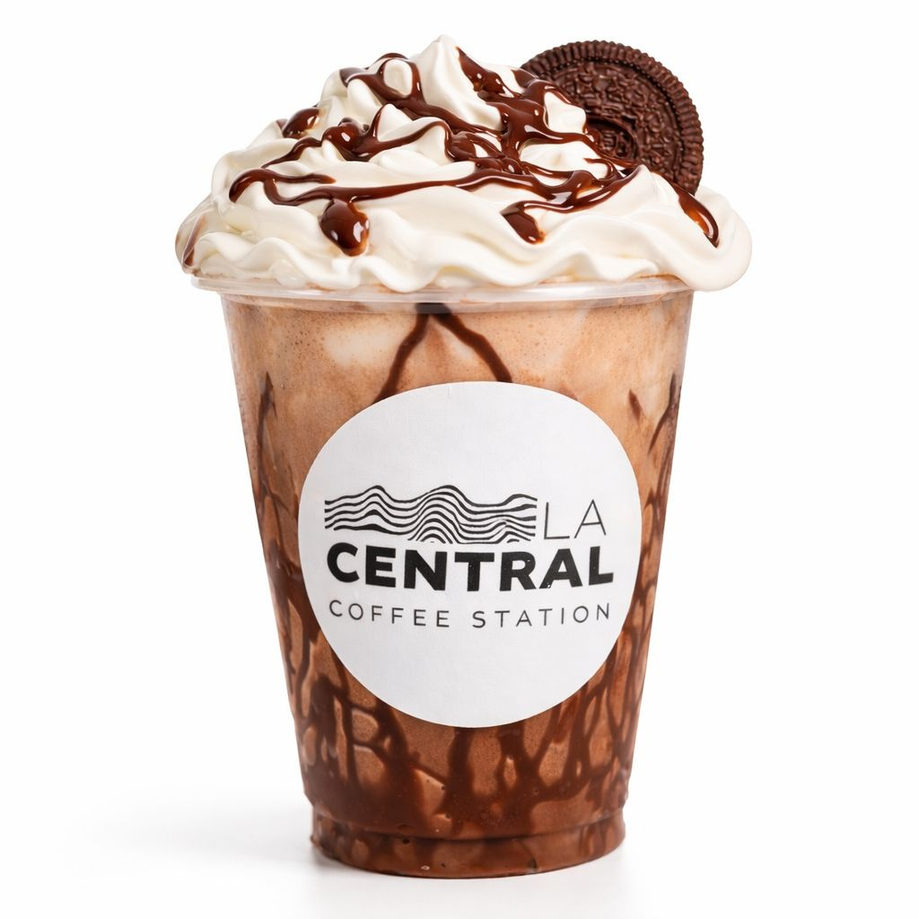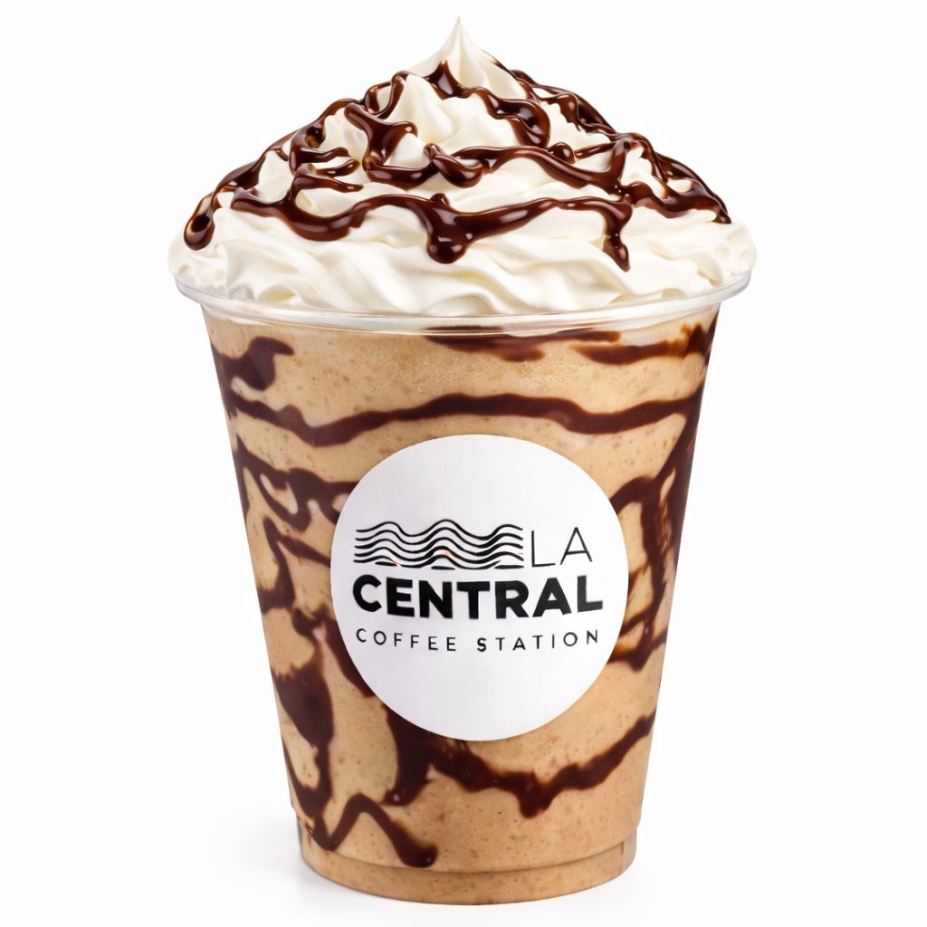 Bebida frapeada a base de café, salsa de la casa, crema chantilly.