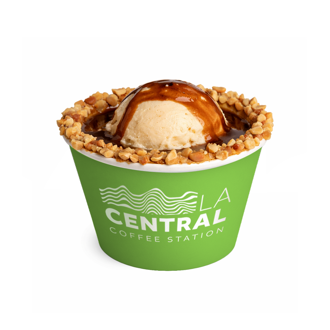 Delicioso café espresso, acompañado de helado de vainilla, maní y salsa de arequipe.