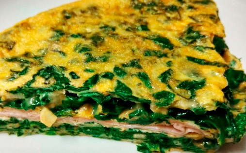 Tortilla de 2 huevos, cebolla, tomate, queso doble crema, espinacas, jamón, mantequilla y sal al gusto. Acompañado de pan tajado