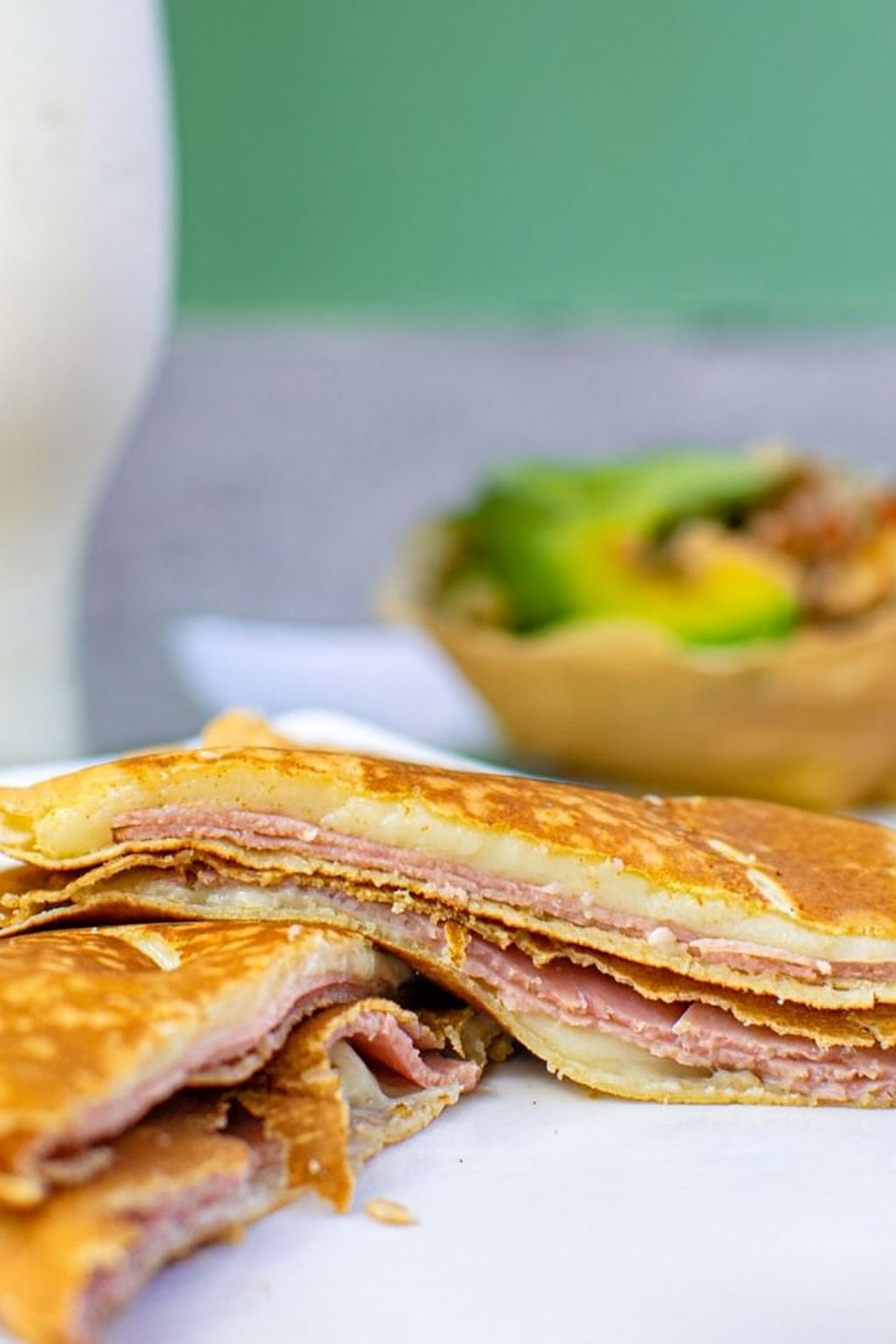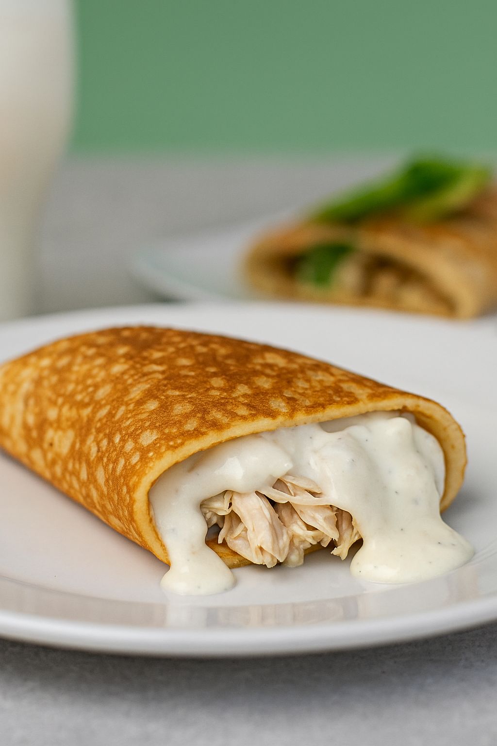 Crepe de pollo con champiñones, queso y salsa blanca.