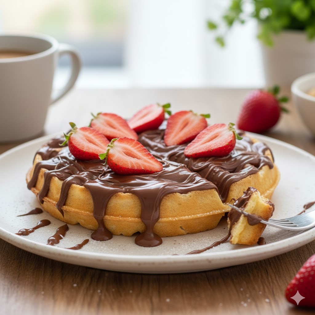 Delicioso waffle con Nutella y 1 bola de helado (sabor a elección) más crema de chantillí.