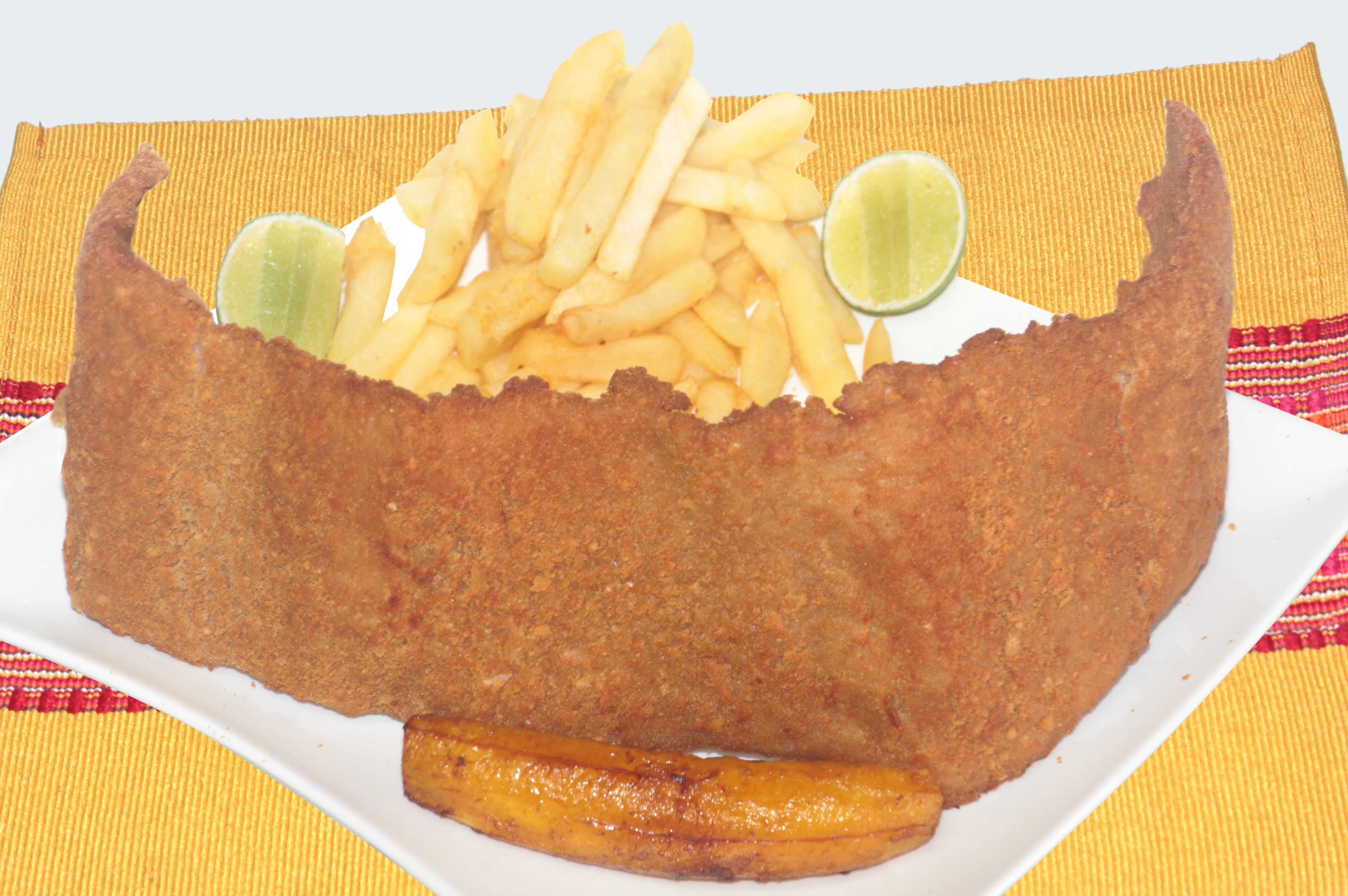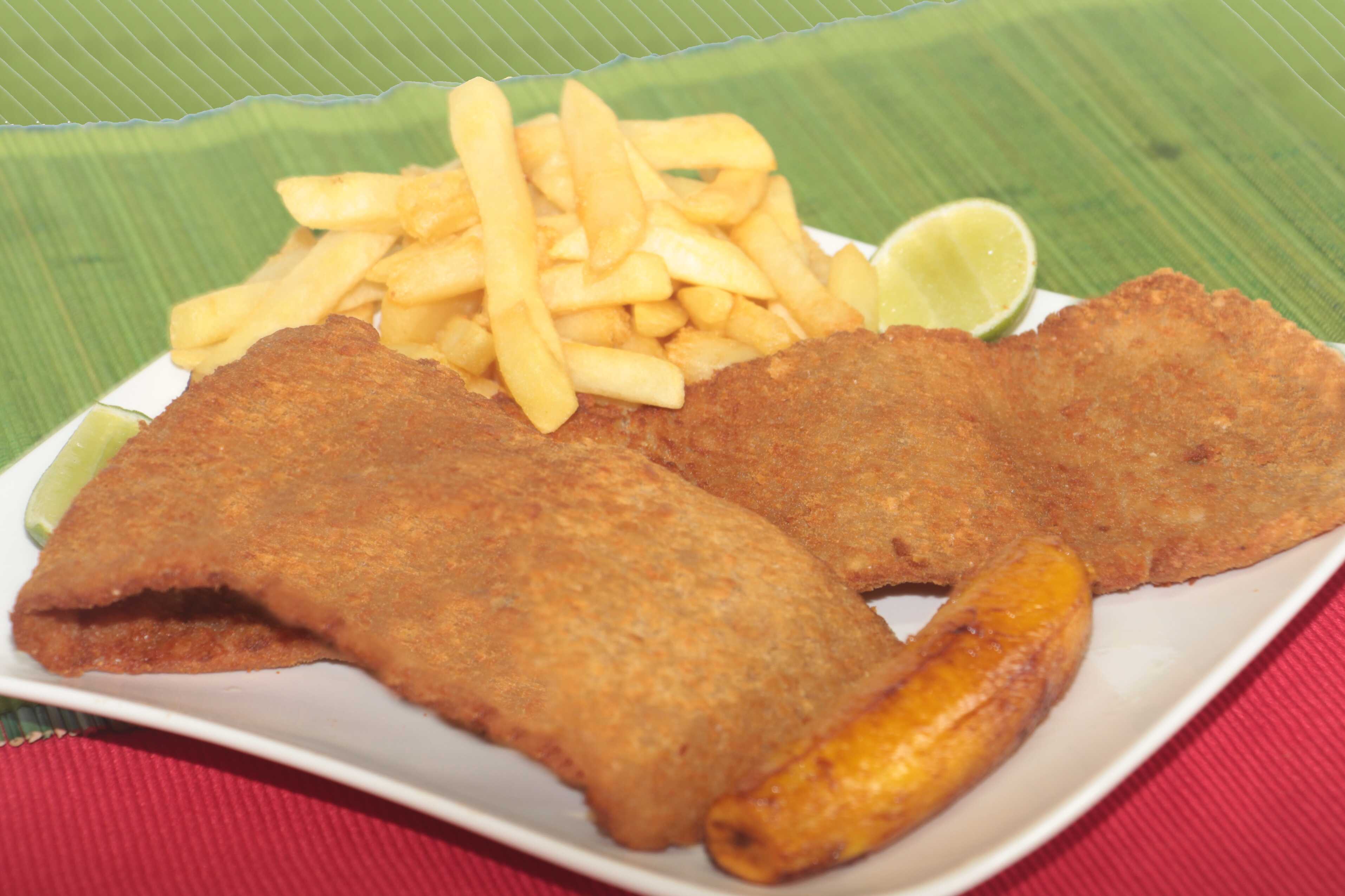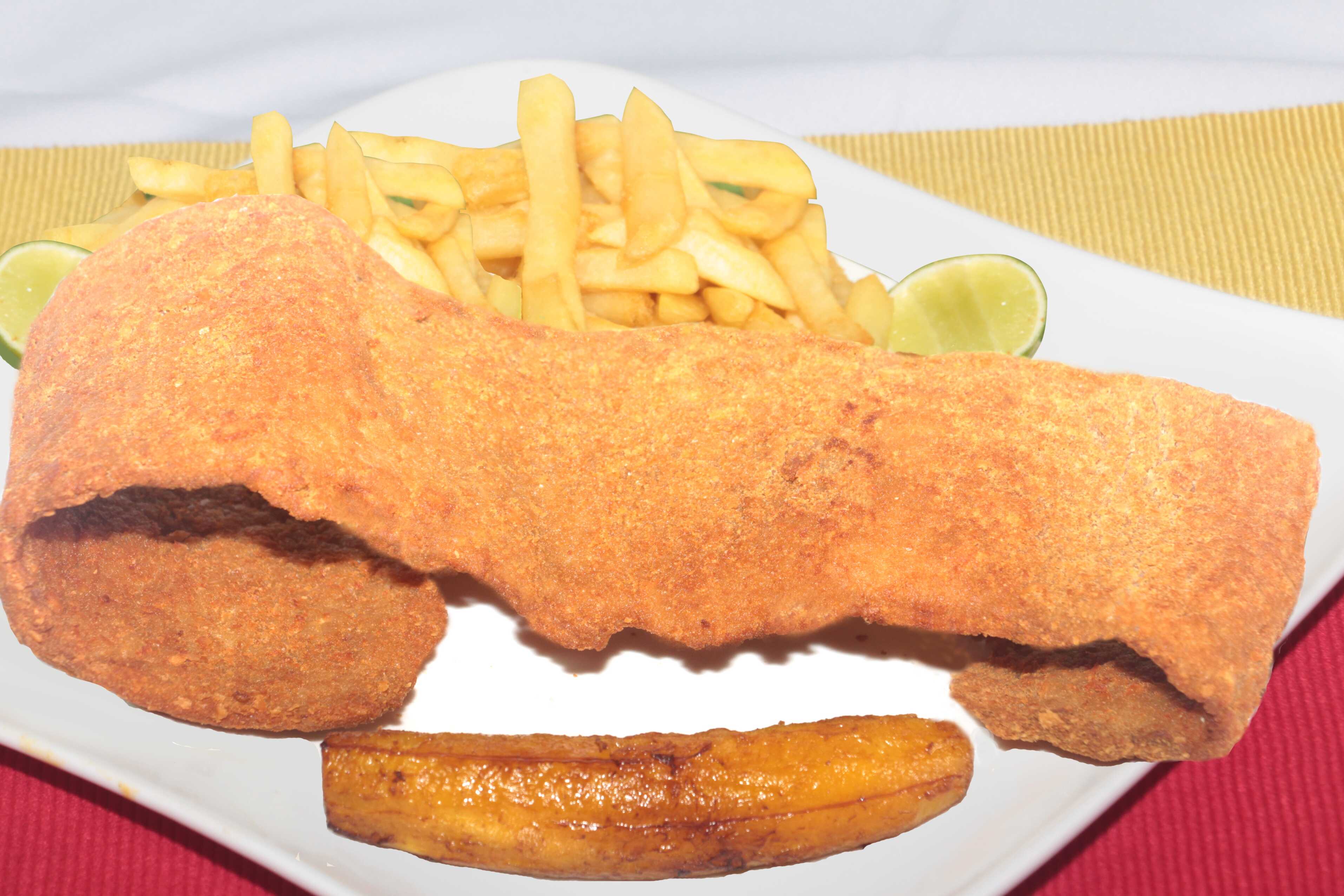 Acompañado de Ensalada, Papas a la francesa y maduro