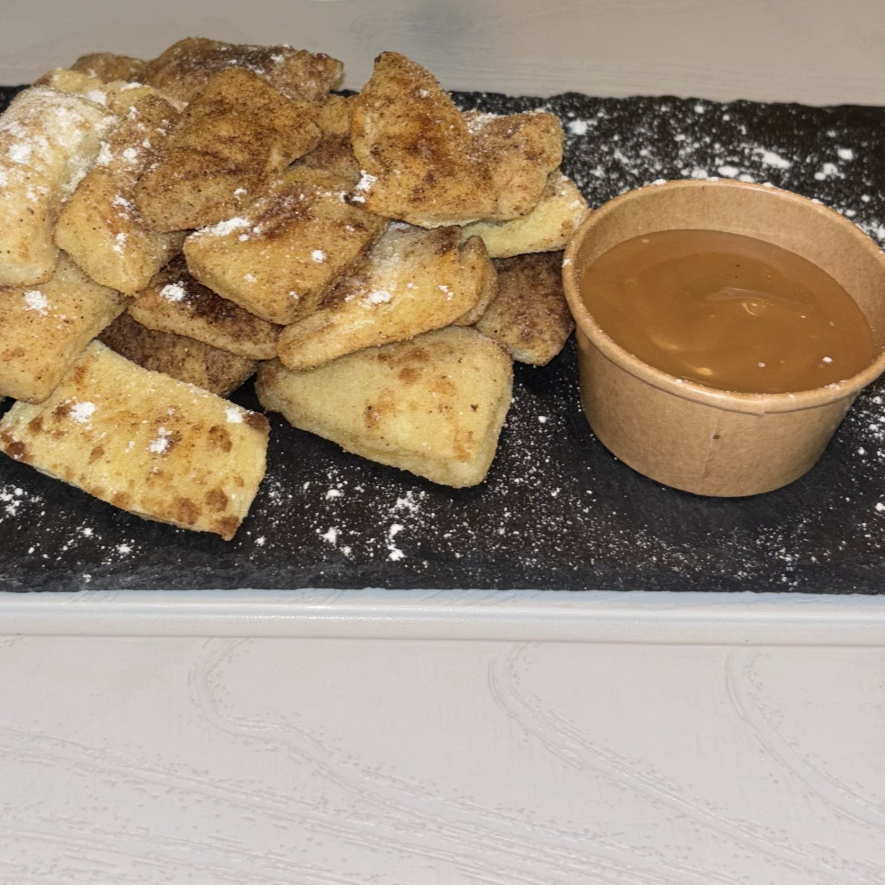 Una pieza dorada y aromática creada con masa napolitana fresca, coronada con azúcar glaseada y un delicado toque de canela. El arequipe acompaña la experiencia con suavidad y carácter, creando un equilibrio perfecto.