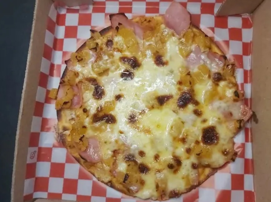 Jamón, piña canada, salsa casera de ajo, Queso y pan francesa.