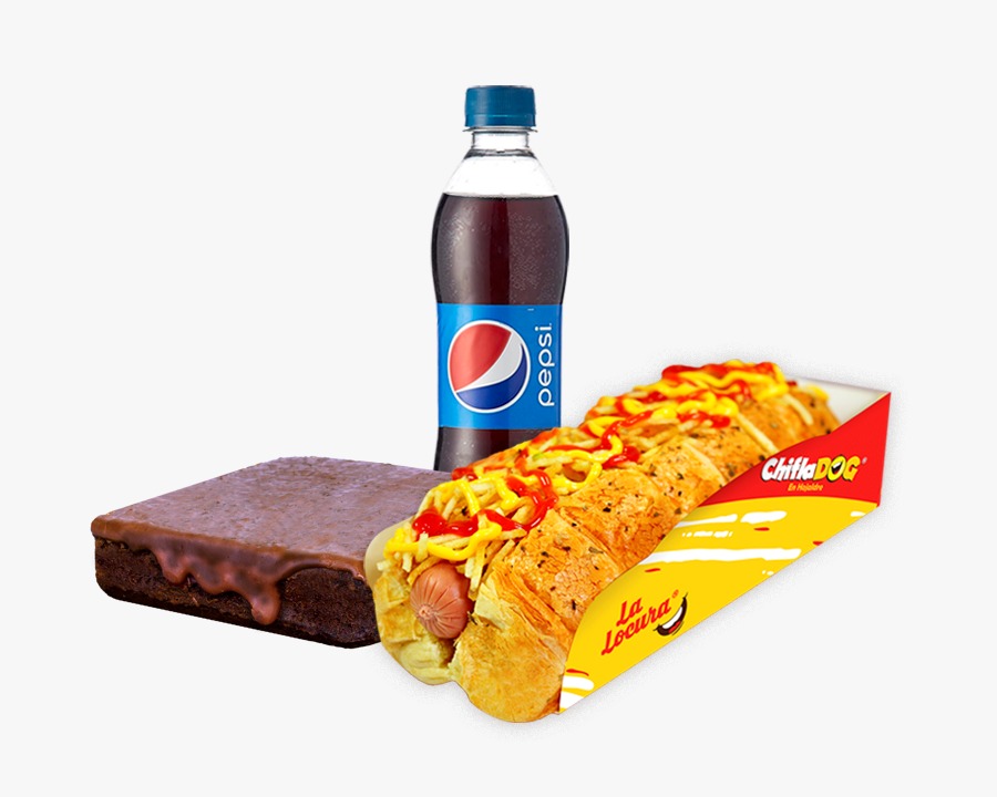 Pan Semihojaldrado con salchicha tipo americana, crocantes papitas y salsa a su gusto (Tomaste, Rosada, Pina y Queso) + 1 Bebida + 1 Postre (Brownie o Corazones x 8 unds