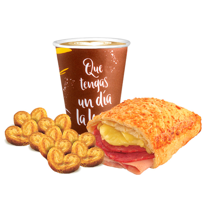 1 Pastel tradicional la locura 120gr, 1 café 9oz capuccino original o capuccino vainilla, 1 delicioso postre a elección.