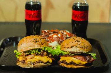 2 Hamburguesas Clásicas con doble queso y doble tocineta, una salchipapa con adición de tocineta y queso fundido, y 2 gaseosas 400 ml sabor a elección