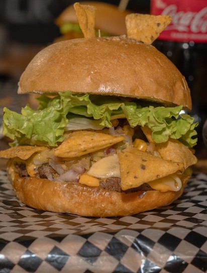 Carne 150 gr, queso americano, tomate, cebolla, lechuga crespa, tocineta, maicito desgranado, guacamole, pico de gallo, tostacos picantes y salsa propia.