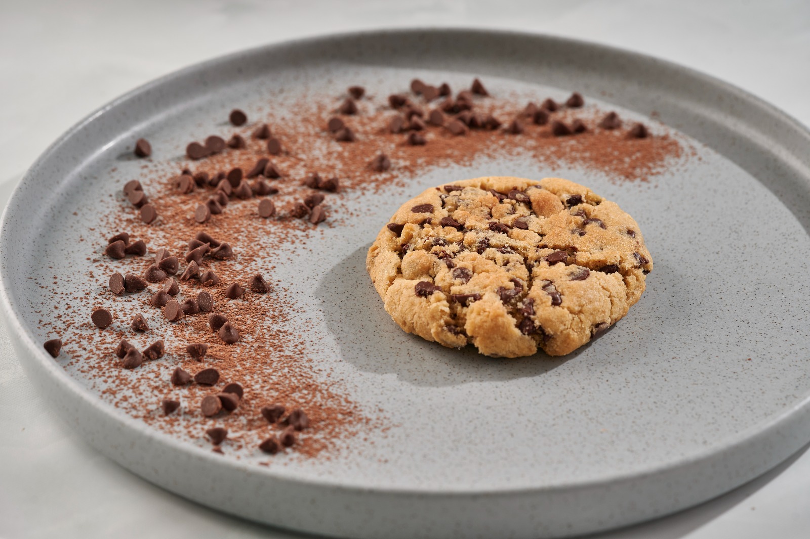 Galleta artesanalmente preparada con chispas de chocolate.
