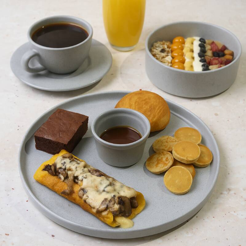 Exclusivo de La Qatrie – Edición Cumpleañera Un desayuno elegante y delicioso para comenzar el cumpleaños con alegría. Incluye frutas frescas, pancakes con caramelo, omelette con champiñones, pan brioche, café colombiano, zumo de naranja y mini cake temático. Una celebración desde el primer bocado.