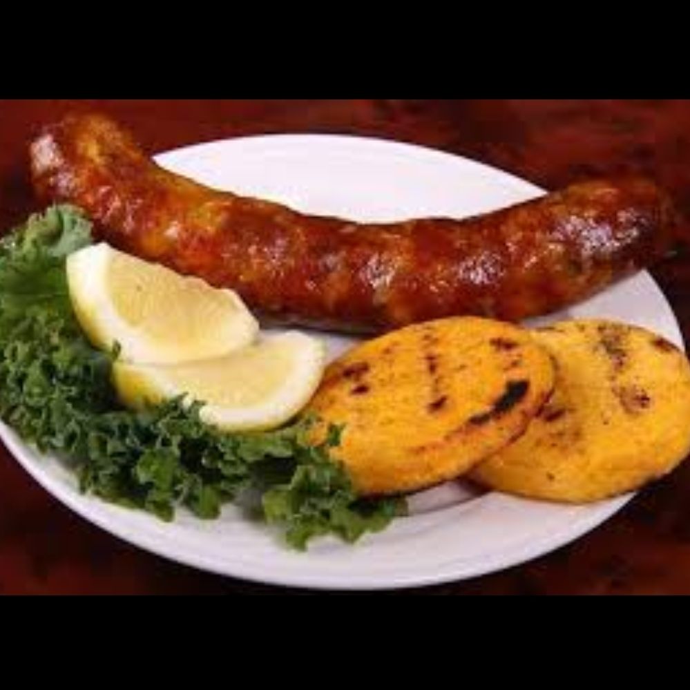 Delicioso combo con una arepa de choclo y un chorizo en promo.