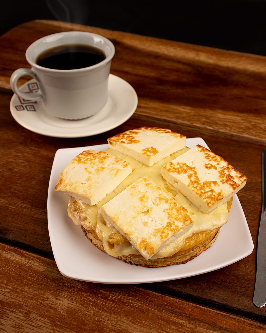 Queso crema, maduro frito, jamón, Ranchera asada.