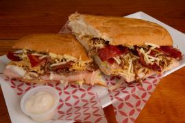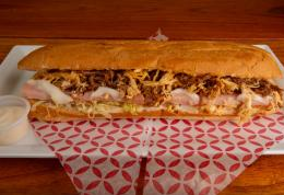 Lechuga, queso, jamón, pollo desmechado, salsa de ajo y showy.