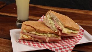 Lechuga, queso, jamón, salsa de ajo y salsa de showy.