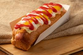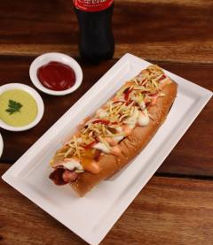 Salchicha Ranchera, tocineta, cebolla, queso, jamón y ripio.
