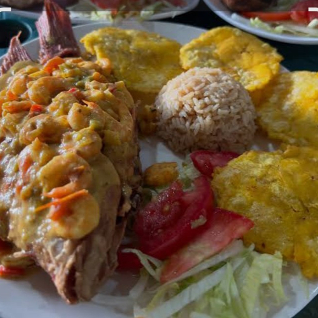Pargo rojo sudado arroz patacon y limonada