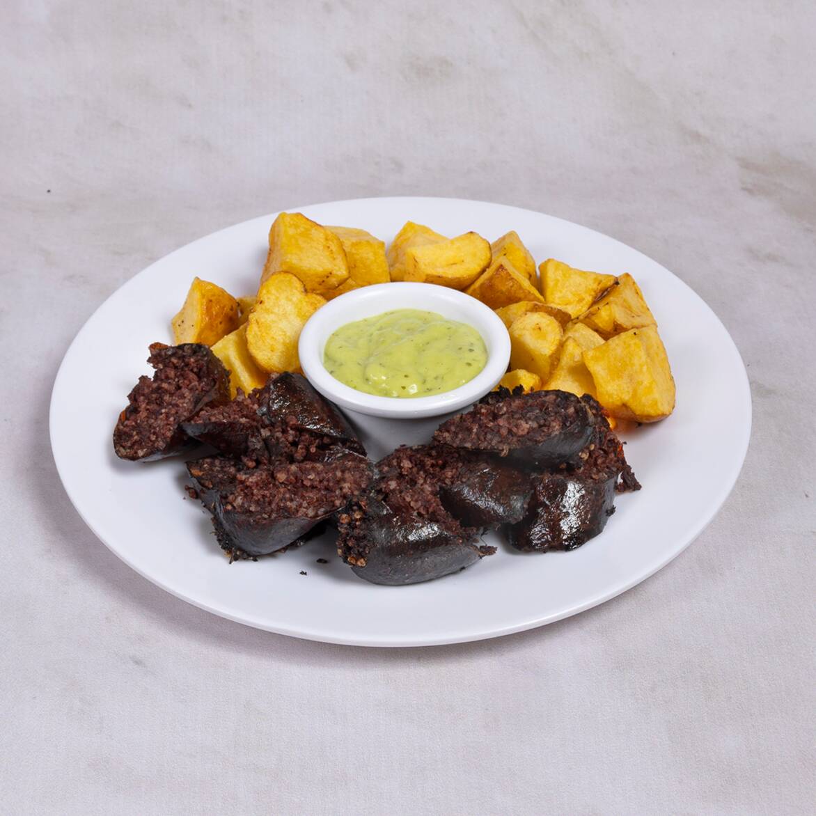 300 Gramos de chunchullo con ají sevillano (escoge entre papa criolla 200 gramos o papa a la francesa 150 gramos. Como acompañante.