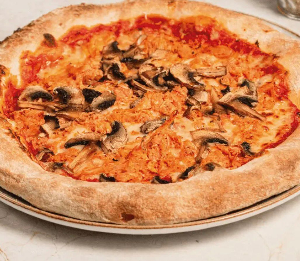 2x1 Pizza Mediana (6 porciones) Tomate san marzano, queso mozzarella, pollo y champiñones.
