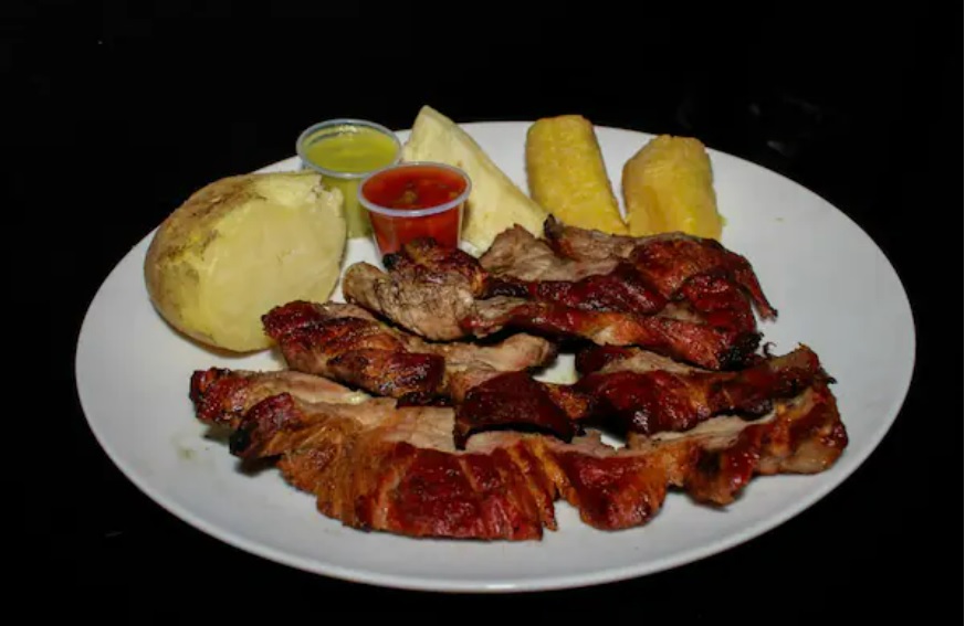 Jugosos trozos de costilla con el mejor sabor de nuestra parrilla. Acompañados con papa y yuca cocida.