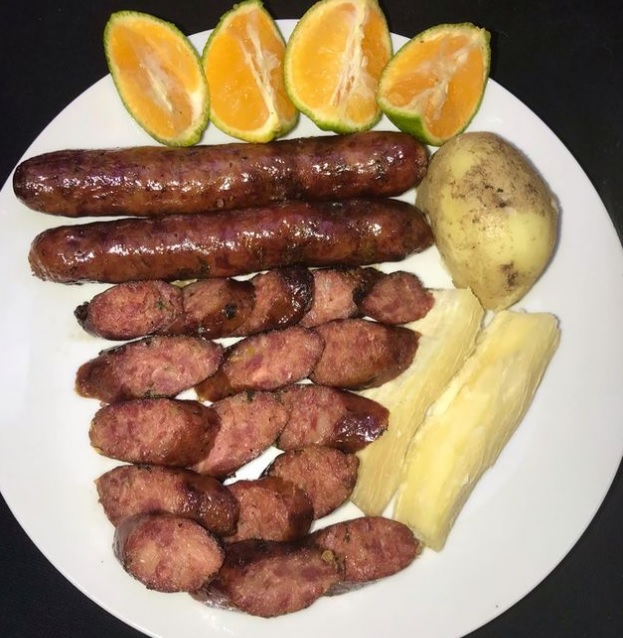 Jugosos trozos de carne a la llanera, acompañados con papa y yuca cocida. 4 personas.