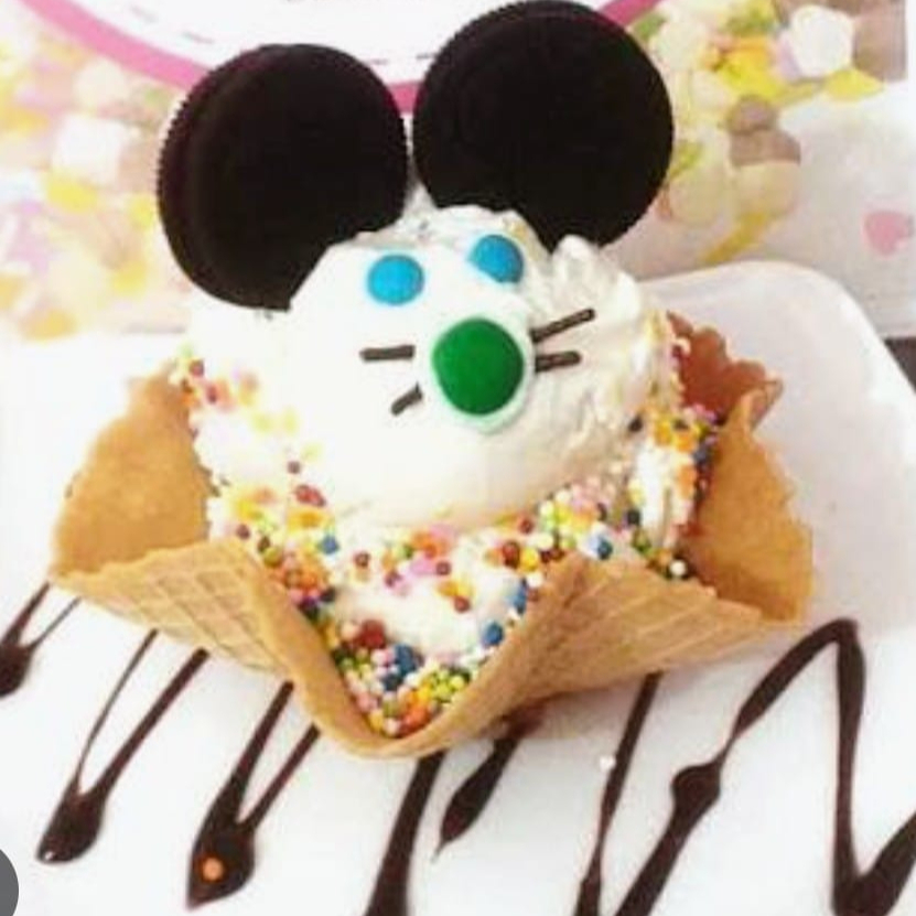 Una bola de helado, estrella, galleta oreo y m&m.