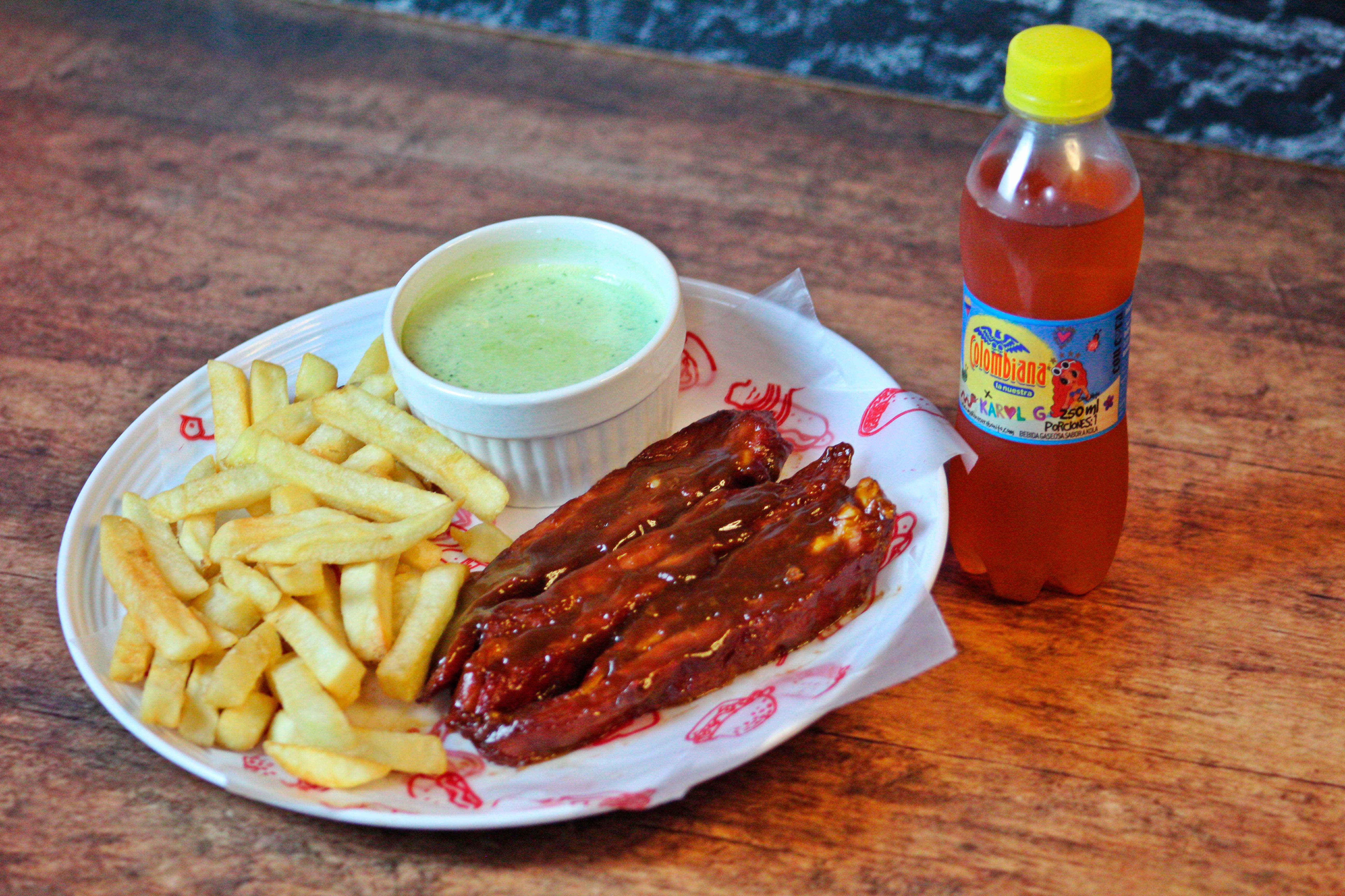 Costillas de 250 gr + papa francesa + gaseosa de 250 ml