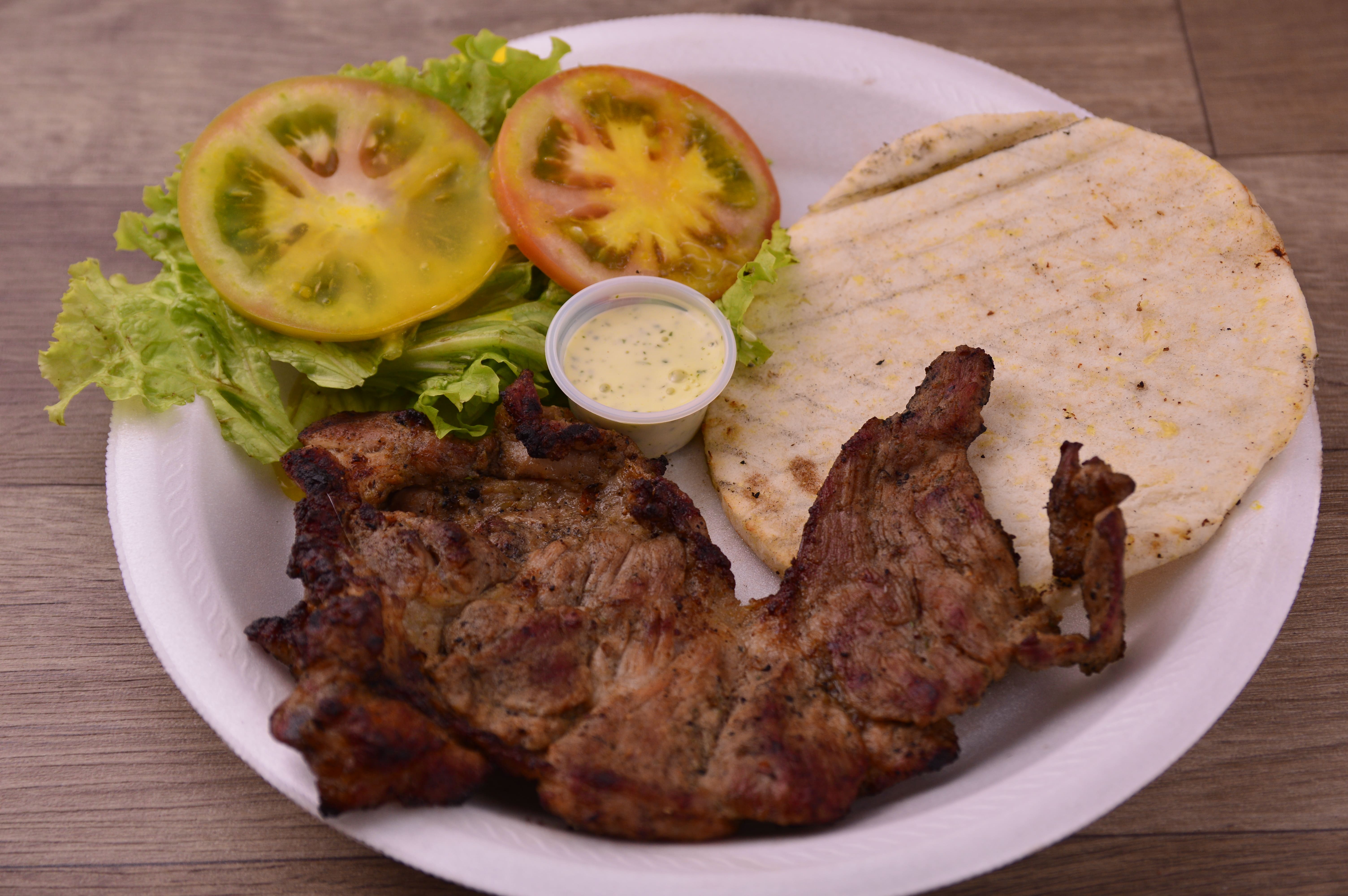 Porción de cerdo, Arepa, Tomate, Lechuga, Salsa de la casa