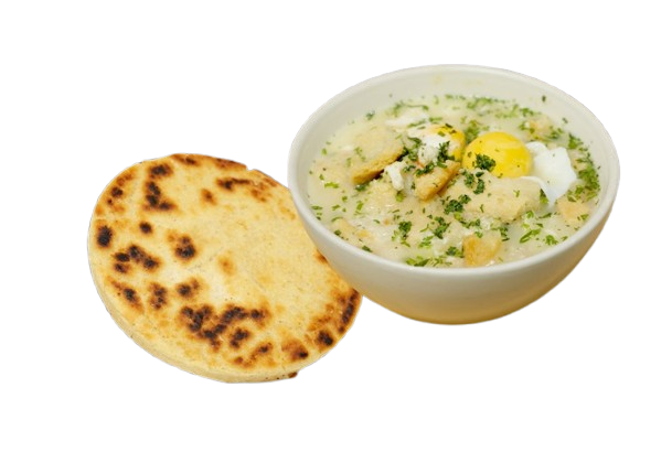 El famoso caldo de huevo, Santandereano. Tiene un sabor suave y cremoso. Hecho con papa tierna, huevos frescos, leche cremosa y con el toque Santandereano de una tradicional arepa.
