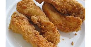 Filete de pechuga de pollo apanada acompañada de papa a la francesa.