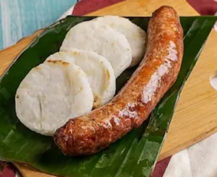 Salchicha llanera, tocineta, chicharron, carne desmechada, pollo desmechado, queso, ripio y salsas.