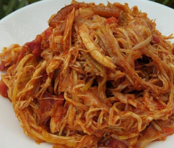 alchicha llanera, tocineta, chicharron, carne desmechada, pollo desmechado, queso, ripio y salsas.