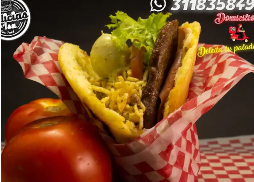 250gr bola negra especial, papa a la francesa o papa amarilla, ensalada y arepa.