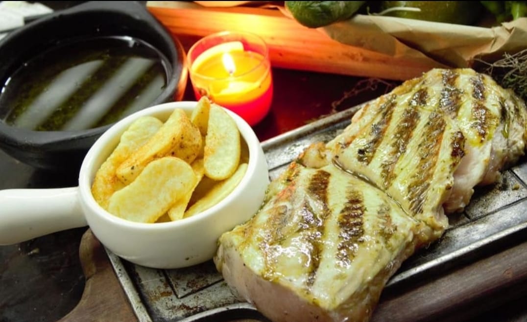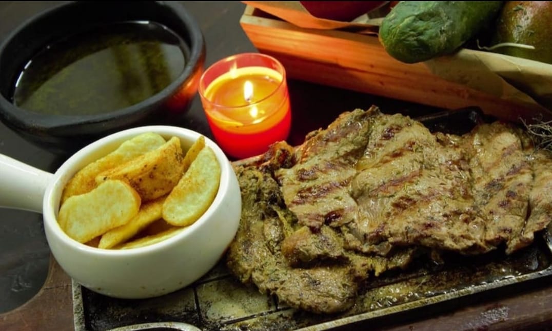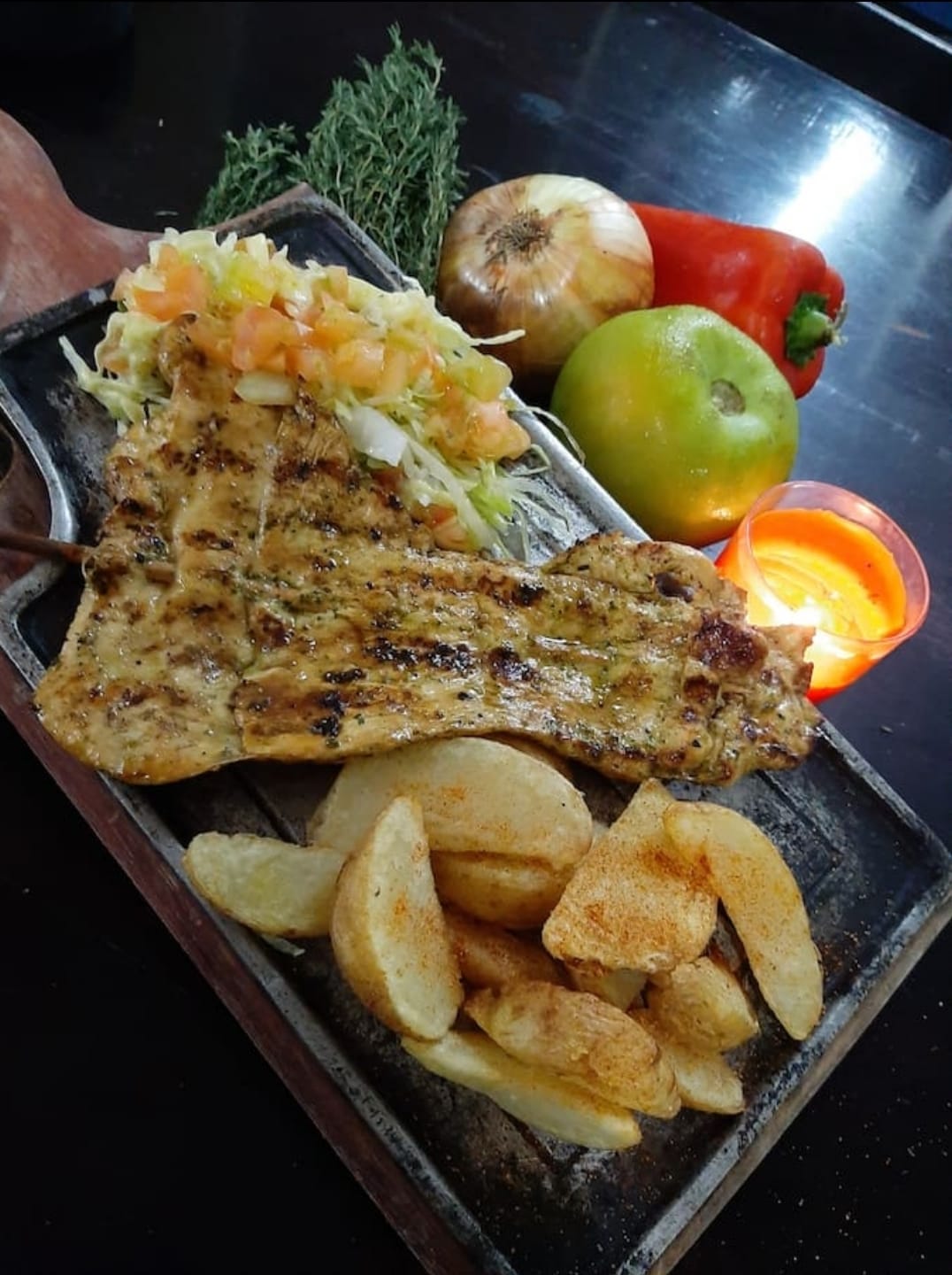 Carne de res, lomo de cerdo, chorizo artesanal de cerdo, pechuga,costilla de búfalo, acompañado de papa a la francesa, ensalada y maduro.(opcional rellena)