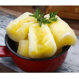 350 g Aprox de chicharrón de anca, con yuca al vapor o papa amarilla con ají de hierbas y salsa cheddar - (peso de la proteína en crudo).