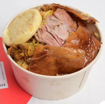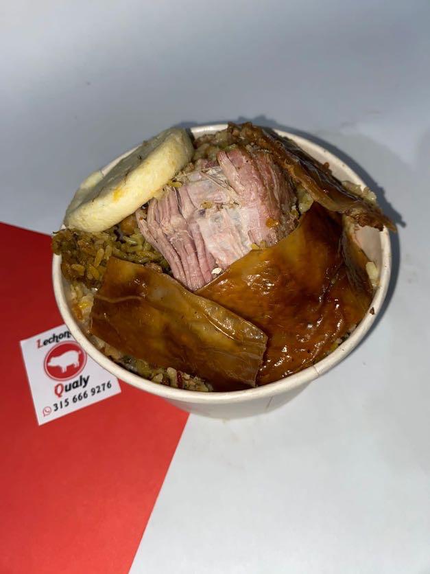 4 cajas de lechona personal (380 g De arroz, carne de cerdo, arvejas guisantes y condimentos) + coca cola 1.5 litros