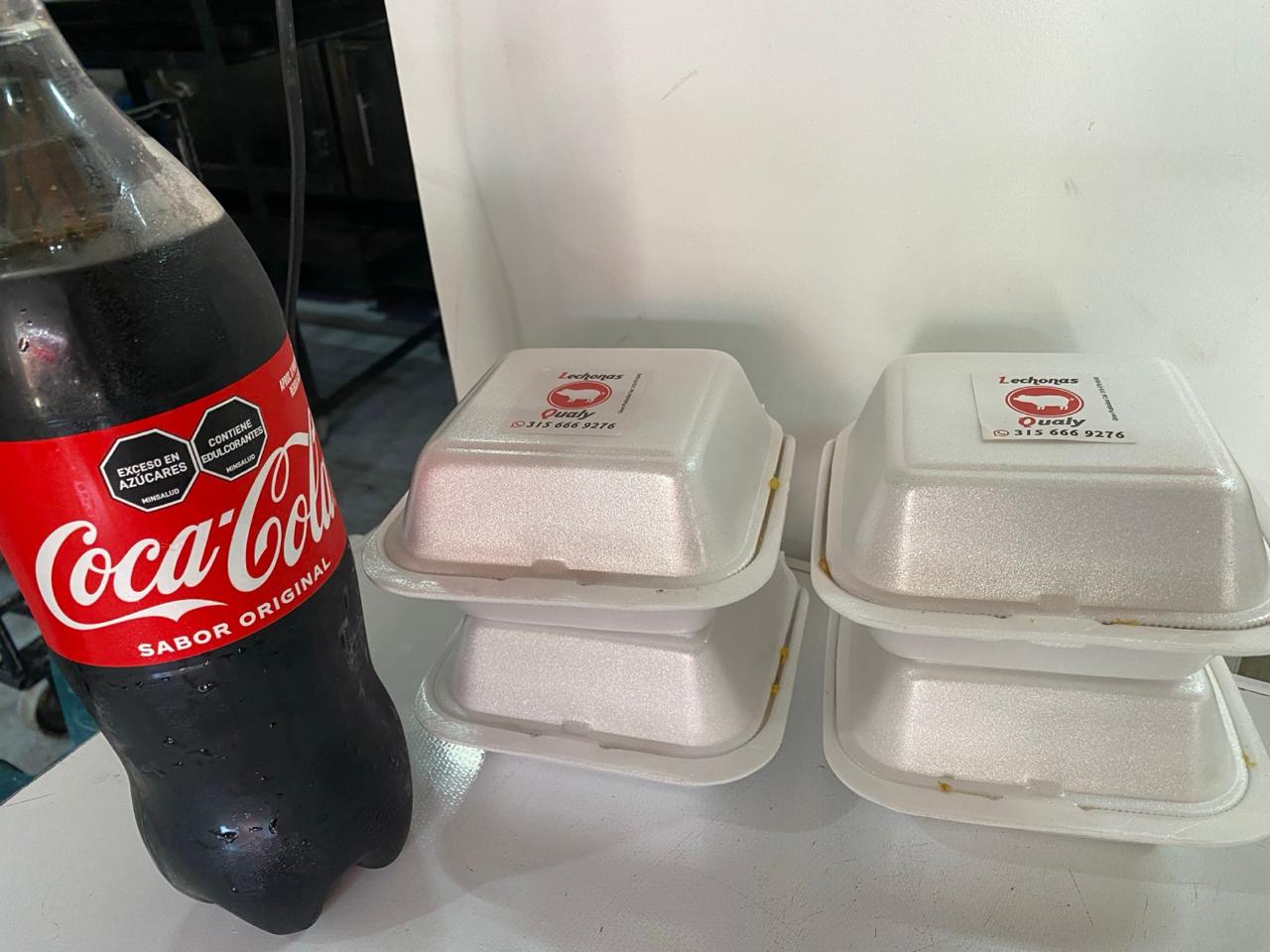 4 Cajas de lechona Qualy de 350 gramos + Coca-Cola 1.5 L.