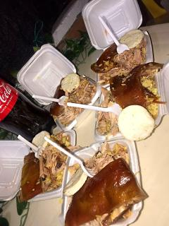 2 lechonas familiares para 3 personas cada una, elaborada a base de arroz, arveja y carne de cerdo, con arepa y cuero de lechona, acompañadas de gaseosa 1.5 L de tu preferencia