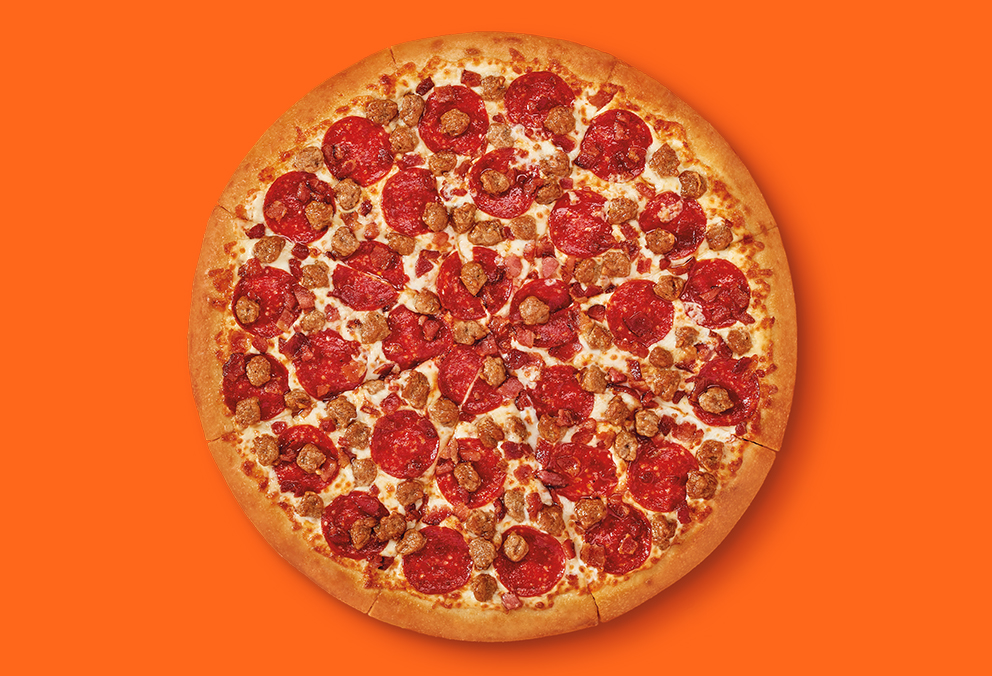 Pizza grande de 8 porciones con base de salsa de tomates y queso, triple sabor, pepperoni, salchicha italiana y tocineta. No se puede personalizar o agregar ingredientes adicionales.