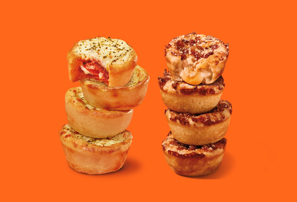 Panecillos recién horneados elige entre pepperoni, 4 quesos y tocineta o bocadillo, con un toque de mantequilla de ajo y rociado con queso parmesano con especias italianas, 8 unidades.