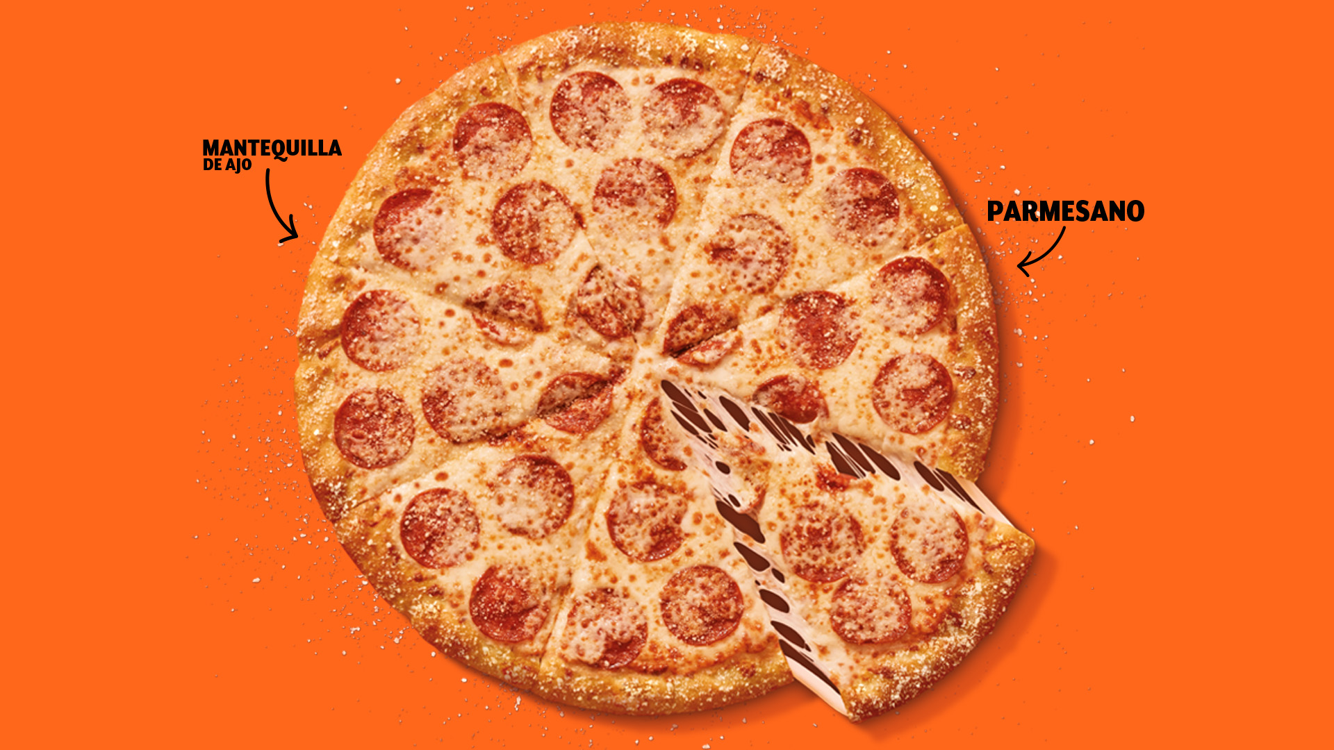 Pizza grande de 8 porciones con borde de queso bañado en mantequilla de ajo y queso parmesano, base de salsa de tomates, queso y pepperoni, acompañada de deliciosos Crazy Bread con nuestra emblemática salsa de tomates y bebida 1.5 Lt a elección.