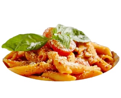 Cuatro piezas de canelones con pollo , carne boloñesa ,salsa napolitana , acompañado de pan francés con ajo